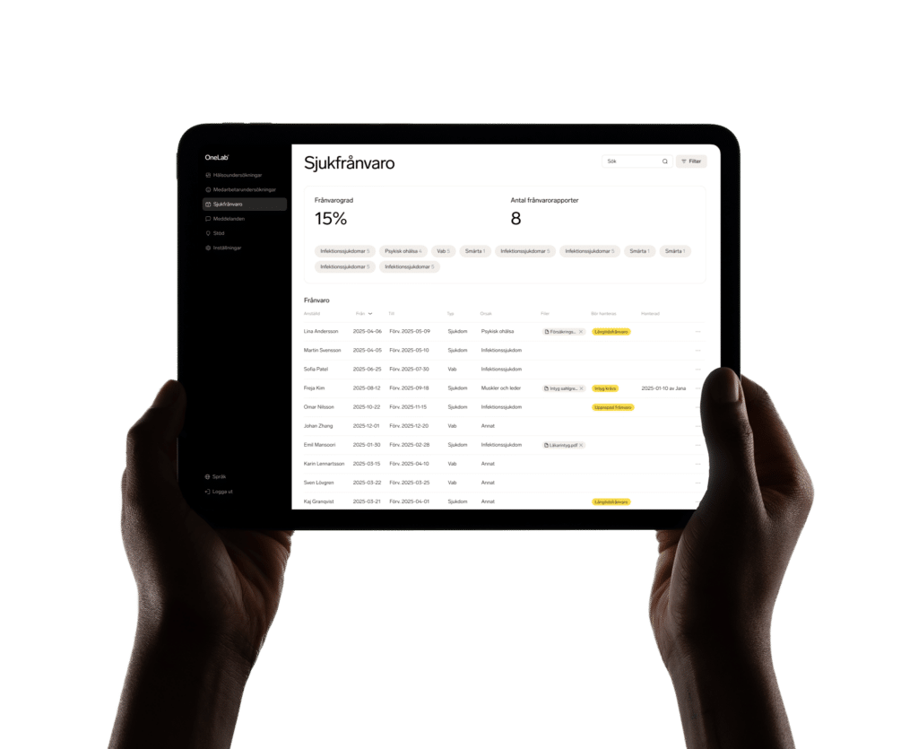 “Med hjälp av OneLab får vi en ökad medvetenhet kring hälsa, både hos medarbetarna själva och hos oss som arbetsgivare. Vi får insikter om vad vi behöver lägga ett extra fokus på, vilket gör att vi får större effekt av våra hälsoinsatser”